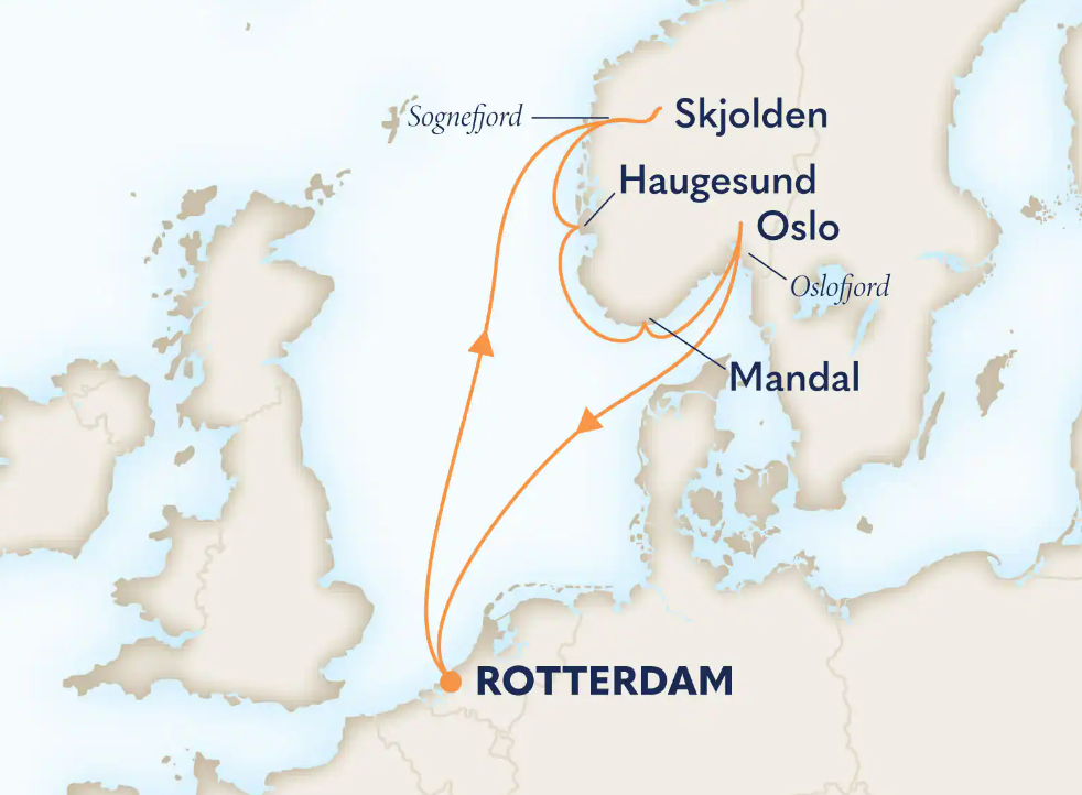Een droomrondreis vanuit Rotterdam door de spectaculaire fjorden en steden van Noorwegen. Een schilderachtige cruise naar Oslofjord en Sognefjord, en verken de prachtige stad Oslo: de thuisbasis van de schilder Edvard Munch.