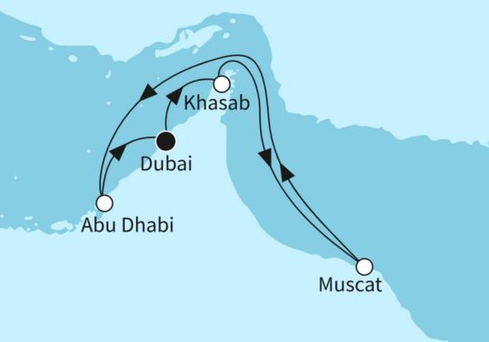 Eindeloze woestijnen, adembenemende architectuur en het fascinerende contrast tussen oude tradities en moderne wonderen. De Emiraten beloven 1001 onvergetelijke indrukken. Zo weet Dubai je telkens weer te verrassen. Waar anders struin je ’s ochtends door smalle steegjes vol geuren en kleuren van traditionele souks om ’s middags te shoppen in glimmende malls of te genieten van het uitzicht vanaf een futuristische wolkenkrabber? Tijdens deze cruises naar de Emiraten ontdek je niet alleen het veelzijdige Dubai, maar ook de parels eromheen. Zo vaart het schip ook naar het elegante Abu Dhabi, het authentieke Oman en het verrassende Qatar.