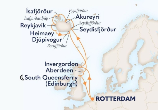 Vertrekdata: 07 jun, 12 jul en 16 aug 2026 (ook mogelijk als 7 nachten Rotterdam – Reykjavik of v.v.)