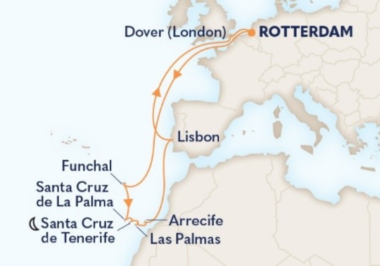 Vertrekdata: 16 mei, 13 jun, 13 sep (Noorderlicht, Rotterdam), 17 okt (Noorderlicht), 7 nov (Noorderlicht)
